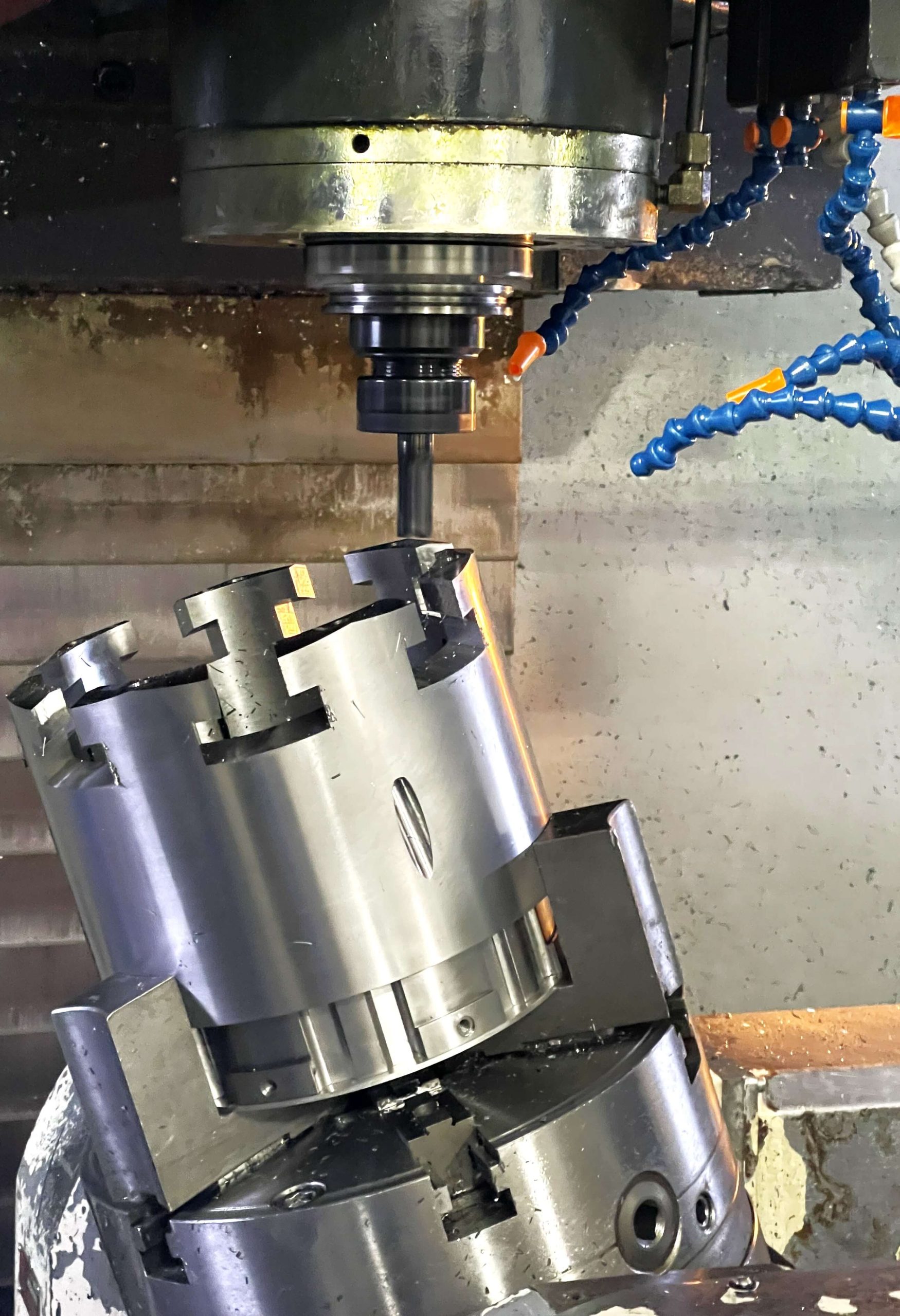 The largest CNC lathes have steady rests and can machine 120 inches in length and the conventional manual lathes can machine 192 inches in length. Some of our CNC mills have 5-axis capability and all are using the latest programming software.